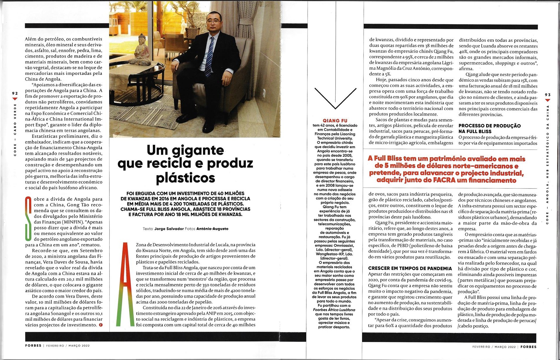 Chairman of FULLBLISS ANGOLA First Appears in the First 2022 Issue of Forbes Magazine