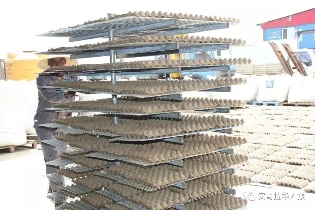 Local staff packing the egg trays